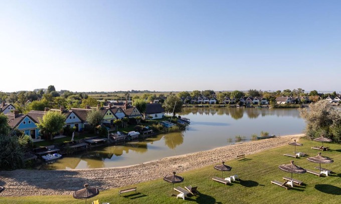Featuring garden views, Seepark Weiden - Baumhof in Weiden am See features accommodations and a garden. This beachfront property offers access to a balcony, free private parking, and free Wifi. Rooms include a patio with views of the lake. All units comprise a seating area with a sofa, a dining area, and a fully equipped kitchen with various cooking facilities, including a dishwasher, an oven, a toaster, and a fridge. A stovetop and kitchenware are also offered, as well as a coffee machine and a kettle. At the apartment complex, units include a private bathroom and bed linen. Cycling and hiking can be enjoyed nearby, while a bicycle rental service and a private beach area are also available on-site. Mönchhof Village Museum is 6.2 miles from the apartment, while Castle Halbturn is 7 miles from the property. Vienna International Airport is 23 miles away.