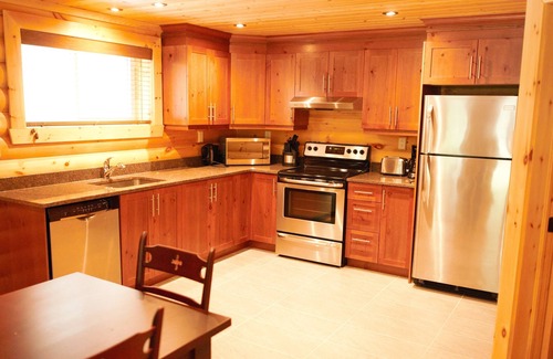 While you're here, you can enjoy all the comforts of home and more, including a full-sized refrigerator/freezer and an oven, as well as a stovetop and a dishwasher. Other amenities include laundry facilities, a hair dryer, towels, and bathrobes.