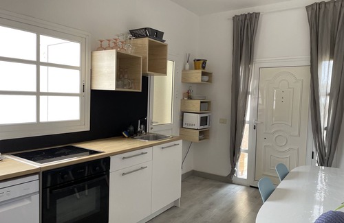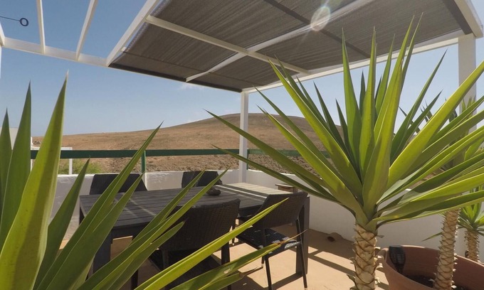 Apartment full foot in house, ideal for tranquility is located in a rural setting just 15 minutes from Corralejo, (main tourist village of the north of the island) Ideal location to visit the island but also enjoy the great beaches of the natural park 10min where large wild beaches of Cotillo 15 min. Essential car. The apartment consists of a kitchen open to the living room, a large master bedroom and a bedroom with two bunk beds. Private terrace with views of the volcanoes. Private parking.