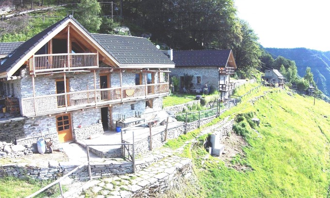 The new and lovingly renovated group seminar house Chia di Mütt offers space for 8 - 12 people. A hiking trail leads from the village of Spruga up to the house in 45 minutes and offers a wonderful view over the wild and romantic Onsernone valley and the surrounding mountains.