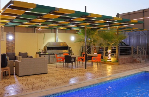 Nestled in Balqa, this delightful chalet offers a soothing retreat for guests. With three tremendous bedrooms, each featuring a king bed, you'll find superb comfort and relaxation here. The chalet also boasts three bathrooms with refreshing showers. Plus, there's an additional space—a cozy living room with a comfy sofa bed. Whether you're unwinding in the spacious bedrooms or enjoying quality time in the living room and also you will enjoy the swimming pool for adult and swimming pool for kids, this charming chalet provides the perfect setting for a memorable stay. Feel free to reach out to us during your stay - we're happy to suggest local spots to check out.
