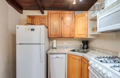 Full size fridge, gas stove/oven, coffee, Pur water filter, blender, crockpot,, etc.