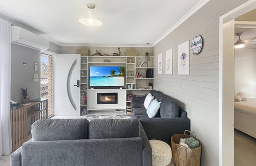 This cosy coastal unit offers a breezy escape across from the beach, with scenic surroundings and self-check-in convenience. Ideal for families or small groups, it features a fully equipped kitchen, private carport, and a sunlit living space. Located near a children’s playground and BBQ area, it’s a perfect base to enjoy North Batemans Bay.