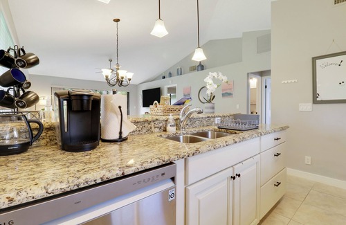 The unit offers all the amenities and is well equipped with TVs in each bedroom and in the living area. Two renovated bathrooms are equipped with everything you need. One has a tub, the other a shower. Brand new kitchen has granite countertops, stainless steel appliances, coffee maker, blender, and all necessary cookware, dishes, glasses and supplies. High speed WIFI, Xfinity cable, outdoor private patio with seating, lounge chairs and grill.