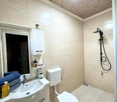 Media & TechnologyFlat-screen TV, TVGeneralFan, Tile/Marble floor, Ironing facilities, Air conditioning, Mosquito net, Trash cans, Fire extinguisher, IronOutdoorsBalconyKitchenElectric kettle, Cleaning products, Toaster, Kitchen, Washing machine, Stovetop, Microwave, RefrigeratorLiving AreaSofa, Sitting area, Dining areaBathroomPrivate bathroom, Free toiletries, Toilet paper, Body soap, Toilet, Towels, Bathtub or showerBedroomWardrobe or closet, LinensAccessibilityEntire unit located on ground floorRoom AmenitiesClothes rack, Drying rack for clothing |