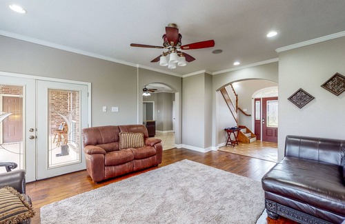 Peace and utter relaxation can be achieved at this Texas farmhouse. Enjoy the sights and sounds of the resident farm animals and away from your stay, enjoy easy access to nearby wineries, live music venues, hunting preserves, trailheads, and shops. When you want to visit the city, you won't have to head too far to reach nearby Houston.