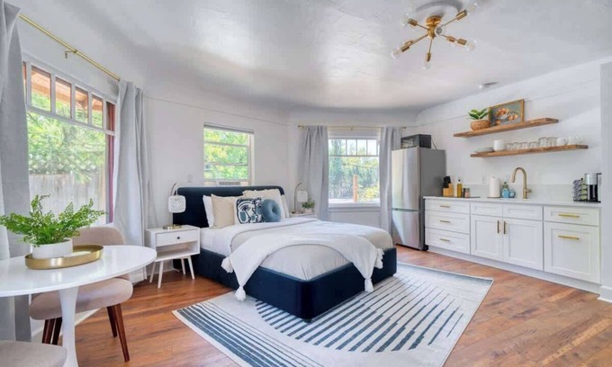 Discover a private retreat in the heart of Portland where nature's tranquility coexists harmoniously with urban conveniences. As you enter this meticulously renovated studio apartment, you are welcomed by a stylish, modern design beautifully complemented by a cozy ambiance that sets the stage for relaxation.