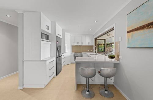 Located in Westlake, QLD, Serene Lakefront Villa with private pool, free Wi-Fi and private parking for guests who drive. The air-conditioned accommodation is non-smoking and features 5 bedrooms, fully equipped kitchen with dishwasher and oven, washing machine, dryer and 3 bathrooms. Guests can take in the views of the lake from the patio, Guests can take advantage of the warm weather with the property's barbecue facilities. Kayak and fishing activities at the backyard.