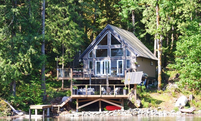 Escape to our lakeside cabin on Harrison Lake, nestled in a picturesque location. Enjoy breathtaking views from the large deck overlooking the serene waters. Dive into activities like swimming, paddle boarding right at your doorstep. Accessible 35 mins down the scenic East Harrison FSR (4x4 recommended). Experience the off-grid charm with solar power, compostable toilet, and water pump. Please bring your own linens. Find relaxation and adventure in this idyllic lakeside retreat.