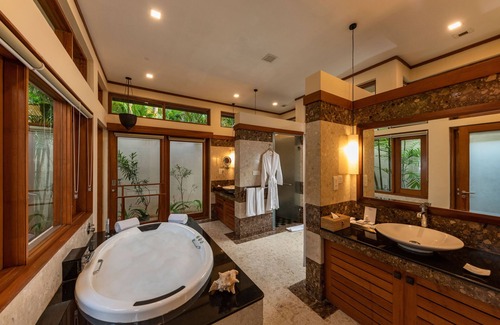 Serene Pavilions offers 12 air-conditioned accommodations with private plunge pools and fireplaces. Rooms open to furnished patios. Accommodations offer separate sitting areas. Pillowtop beds feature Egyptian cotton sheets, down comforters, and premium bedding. A pillow menu is available. 42-inch LED televisions come with premium satellite channels. Accommodations at this 4.5-star resort have kitchenettes with microwaves, separate dining areas, and cookware/dishes/utensils. Bathrooms include separate bathtubs and showers with jetted bathtubs, rainfall showerheads, and hydromassage showerheads. Bathrooms are also outfitted with bathrobes, slippers, and bidets.