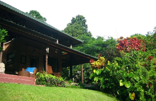 “Rumah Kartika Dharma” has an open floor plan, with a central kitchen, large verandas, and 2 enclosed A/C bedrooms , one with Queen bed, and the other with queen and twin beds, both with semi-open tropical bathrooms (shower only). Upstairs is a semi –open lounge/writing/dancing/painting area with an open half wall + bamboo screens sleeping area consisting of an antique Chinese Wedding Bed (full-sized mattress) with mosquito netting, equipped with a small chest and armoire, fan, and is sufficient for short-term visitors, children, or guests who are OK without A/C. Overall, the home can accommodate a maximum of 5-6 persons.