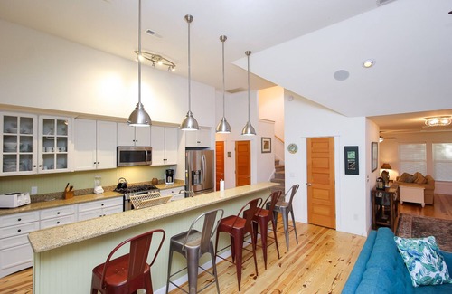Our returning guests will notice lots of wonderful additions to our home. There’s a beautiful new, and bigger, dining set. It seats ten, so your whole crew can chow down together. You’ll also find new “beachy” porcelain dishes, glassware, utensils, flatware, cutting boards, and frying pans. There are several new area rugs throughout the house to make the entryway, master bedroom and hallways more decorative and welcoming. The entire house is now outfitted with plush bright white bath and hand towels. The bedrooms have been supplied with upgraded pillows as well. Because you have been such a pleasure for us to have in our home, we wanted to thank you with more creature comforts to make your stay even more enjoyable. Welcome!