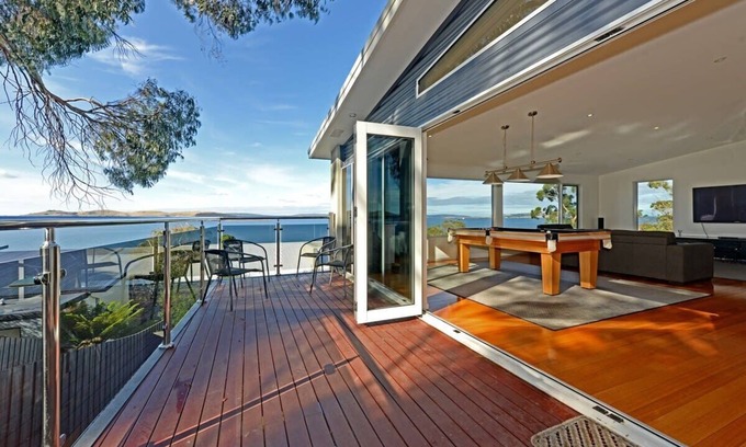 Positioned in leafy lower Sandy Bay with sensational views of the River Derwent, enjoy the serenity in the sun-filled open plan indoor/outdoor living areas this contemporary townhouse offers guests. The property can comfortably accommodate a family or several couples with 3 spacious bedrooms, 2 bathrooms and lots of fun to be had around the Eight ball table. Feels like a coastal getaway only 10 minutes drive from the CBD of Hobart.