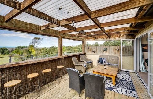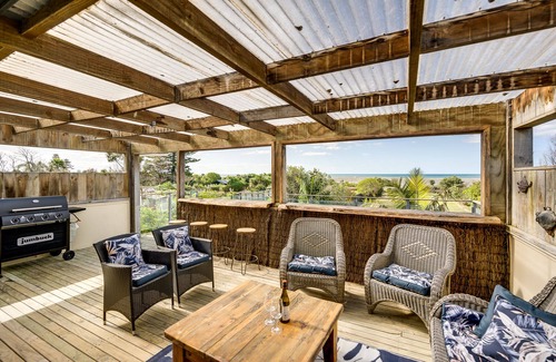Take your pick of places to put your feet up and relax at this Haumoana Beach holiday home. With two decks, plus a ground floor patio, there’s a spot for your morning cuppa staring out at the sea, a place for that afternoon tipple at the outdoor bar, a setting for that classic Kiwi BBQ dinner, and a haven for relaxation.