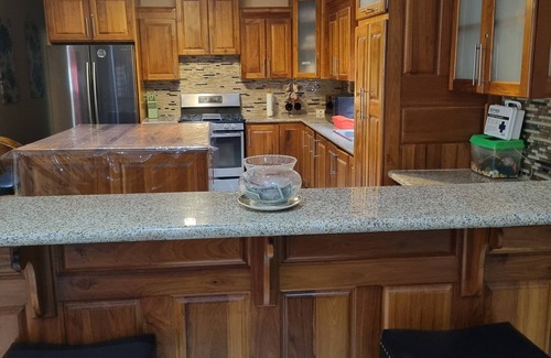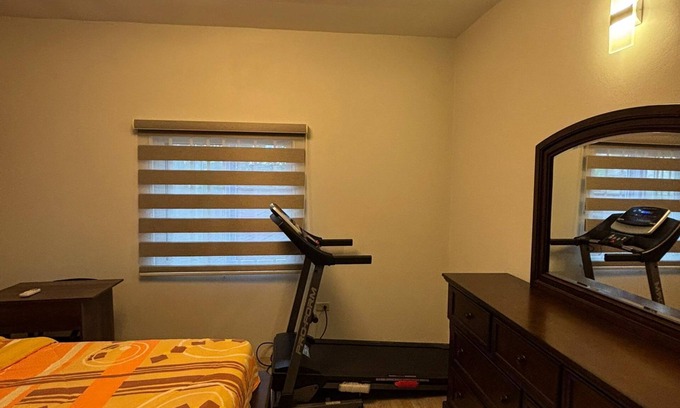 Discover this marvelous 2-bedroom gem in Sangre Grande. This quaint bungalow offers luxurious living area, 2 queen beds, Wi-Fi, AC, and a fitness equipment for guests to enjoy. The serene atmosphere of this property is perfect for those looking to unwind and relax. We hope you'll enjoy your stay at our bungalow.