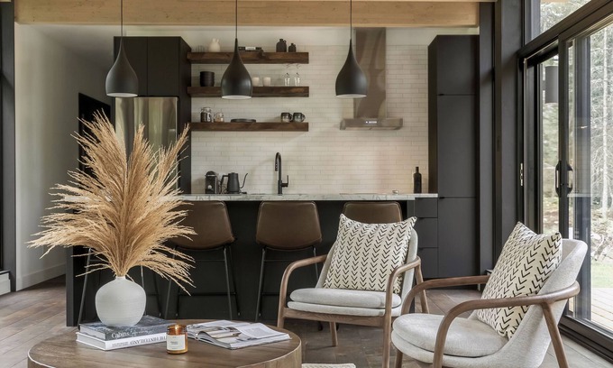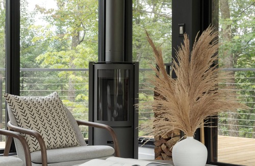 Equipped with a STUV fireplace forms a natural focal point in the living room, building the sense of refined materiality consistent throughout the interior. With open-plan living spaces, one will find the kitchen clearly conceived for the practicalities of daily living, a bright and clean space with European sized appliances neatly housed. Outside grilling flavorful food on charcoal BBQ and roast s’mores by outdoor fire pit. Create the endless moments at Kabinhaus.