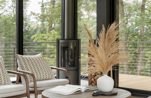 A Scandinavian-inspired cabin in unique alignment with both nature and contemporary living. It is perfect for one or two couples or a small family who appreciate décor throughout, a quiet space and a getaway to the nature.