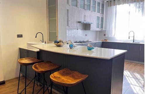 Enjoy a peaceful stay at this awesome 3-bedroom villa in Nairobi. The villa features 1 king bed and 2 queen beds, perfect for a group getaway. With 4 bathrooms equipped with hair dryers and showers, guests can freshen up with ease. Other amenities like Wi-Fi, a washing machine, iron, and heating ensure a comfortable stay. Enjoy your time in Nairobi at our phenomenal villa.