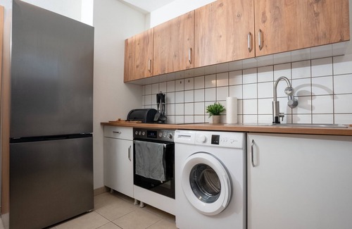Prepare a home-cooked meal in the kitchen, complete with an oven, a stovetop, and a refrigerator, as well as an electric kettle, cookware, and spices. Bathroom amenities include a hair dryer, towels, and toilet paper. And there's a washing machine, so you can even pack a bit lighter. Other amenities include a living room, bed sheets, an ironing board, and heating.