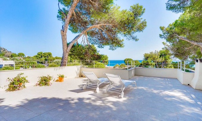 Ses Alzines apartment is a beautiful holiday apartment with sea views, located in an ideal setting almost on the first line of the Costa de los Pinos. It consists of two bedrooms, can accommodate four people and has a large terrace where you can enjoy both the sunrise and the sunset. It is fully equipped with a modern kitchen, a full bathroom and a very bright open living room; Also several small balconies that give a sense of spaciousness. (Tourist registration number: ETVPL/13402).The accommodation of around 80 m² is tastefully furnished and very bright, with views of the sea and the mountains. It also has a great 80m2 terrace with sun loungers, an outdoor shower and beautiful sea views.In winter you can enjoy a fireplace to warm up, and in summer air conditioning (in the living room) and two ceiling fans (in the bedrooms) to cool the bedroom environment.The property is connected to WiFi and has three televisions, one in the living room and two in each bedroom. The apartment also has a baby monitoring camera for those who wish to use it.Description of the environmentSes Alzines is an hour's drive from the airport, and if you choose the car rental option you will find a private outdoor parking space to park your car. If you choose public transport, it would be a journey of about 2 hours, with two different buses. However, once there you have all the facilities to enjoy a wonderful holiday without having to travel. In fact, you will find a supermarket just 200m away.If you are looking for tranquility and peace, this is the right place, surrounded by nature, pines and with sea views, it is the ideal place for those who want to get away from the crowded tourist areas. The place is also ideal for families, and to enjoy the variety of beaches and coves that are around. 100 meters away is a sandy beach and 500m away another rocky one. Also at the gastronomic level you can taste all the variety of restaurants in the area either on foot or by car.For golf lovers, only 100 m separate the property from the Son Servera Golf Course.They also have other attractions such as the Rafael Nadal Academy and its museum if you wish to visit it. Located about 25km from the property.Booking conditions:- A deposit of €250 will be withheld during your stay.