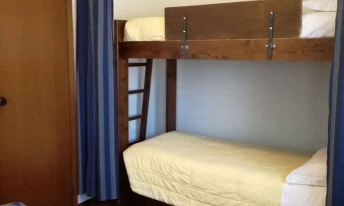 The apartment is a two-room apartment ( 35sqm) 6 beds living room with kitchenette fully equipped, with double sofa bed, bedroom with double bed and alcove with bunk bed. Total 6 beds. Kitchenette with refrigerator, dishwasher, pots and dishes. Bathroom with shower and hairdryer.
