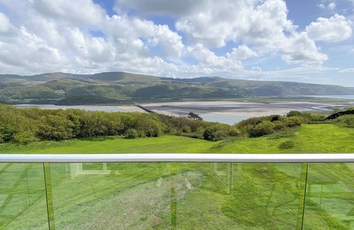 Bedroom 3: Double (4ft 6in) Bed, Freeview TV, French Doors Leading To Balcony Ensuite: Bath, Toilet. Gas central heating, electricity, bed linen, towels and Wi-Fi included. Travel cot and highchair. Telephone (honesty box). Large garden with patio and garden furniture. Balcony. Private parking for 2 cars. No smoking. Please note: There are drops in the grounds.. Located in an elevated position on the headland above Barmouth, with magnificent views of the Eryri (also known as Snowdonia) mountain range, the Mawddach Estuary and out to sea, this detached holiday cottage has a comfortable and relaxing atmosphere. With large gardens overlooking the estuary, and backing onto Panorama Walk which passes over the mountains leading to Eryri National Park, this holiday property has it all. On the first floor is the magnificent panorama suite, a double bedroom with an en-suite and balcony with stunning views of the surrounding landscape. Walking, golf and cycling can be found locally. Shop and pub ½ mile.