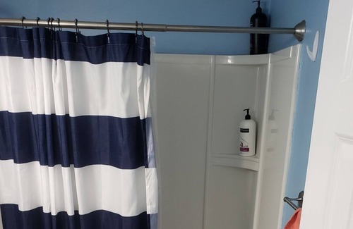 Deck off the kitchen leads to great outdoor shower. Private large fenced-in backyard. Just 8 mins to downtown Falmouth and beaches.