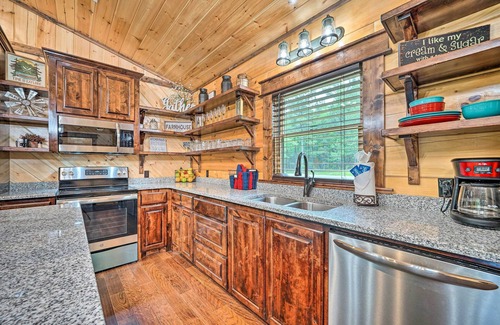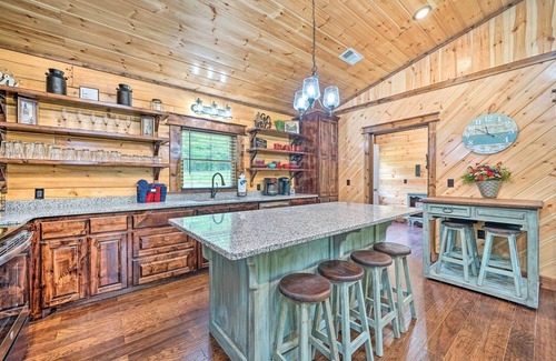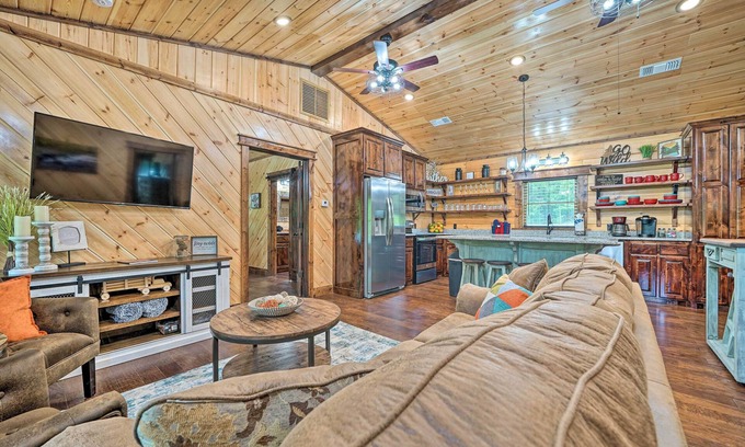 Give your family a break from the hustle and bustle with a dreamy getaway at this Eagletown vacation rental! Highlighted by a fully equipped kitchen, 3 Smart TVs with satellite cable, a covered front porch, and lush trees surrounding the whole property, the 2-bedroom, 2-bathroom real-log cabin offers homey accommodations to outdoorsy groups. Relax and rejuvenate with marshmallows around the fire, rent kayaks and enjoy the Mountain Fork River, or take in the scenery at Beavers Bend State Park.