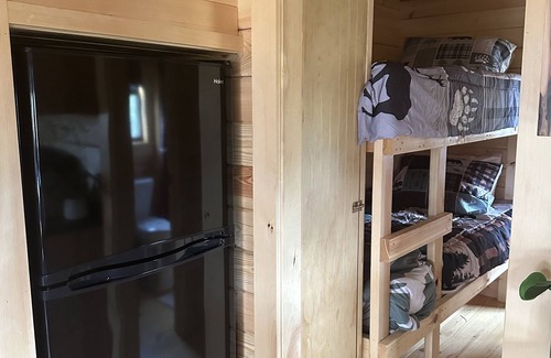 Our tiny home has just as much porch and deck space outside as it does inside, you won't feel cramped up with the massive views that go on and on. Wake up to nature, simply gaze out the windows and I promise your daydreams will take you to a peaceful place. There is a farm close by with roosters and chickens but they are never to loud, a reminder of simpler times. The evenings are so quiet all you hear is the wind in the trees.