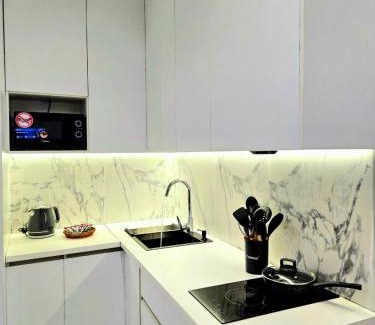 Seven Premium Apartments near Mega Mall offers air-conditioned rooms in Almaty. During your time at this recently renovated apartment, dating back to 2023, you'll have access to free Wifi. Guests can enjoy city views. Each unit has a balcony, a fully equipped kitchen with an oven, a dining area, and a seating area with a flat-screen TV, while the private bathroom includes a bath or shower and bathrobes. A microwave, a fridge, and stovetop are also featured, as well as a kettle. At the apartment complex, the units come with bed linen and towels. First President of Kazakhstan Park is 1.6 miles from the apartment, while Atakent-Expo is 2 miles away. Almaty International Airport is 14 miles from the property.