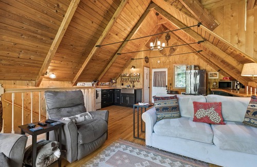 Seventh Heaven is the nature-lover's delight! Look no further for the perfect cabin-in-the-woods experience with a riverside view you've been craving. This A-frame is an all-seasons getaway perfect for a couple's retreat or a family excursion at an occupancy of 6. Just steps away from the river, you'll be nestled comfortably in a private neighborhood that's so quiet, you'll wonder if you have any neighbors at all! Take a dip in the hot tub before retiring to one of the peaceful, fully-outfitted bedrooms. They say heaven is a place on Earth - they must be talking about Seventh Heaven!