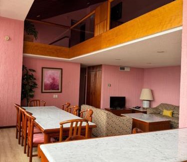 Food & DrinkTea/Coffee maker, Bottle of waterBathroomConditioner, Bathtub, Spa tub, Hairdryer, Toilet, Private bathroom, Toilet paper, Shampoo, Body soap, Shower, Additional bathroom, Free toiletriesGeneralAir conditioning, Safe, Iron, Ironing facilities, Smoke AlarmMedia & TechnologyFlat-screen TV, Telephone, TV, Cable channelsActivitiesHot tubLiving AreaDesk, Sofa, Sitting areaViewView, City viewServicesWake-up serviceBedroomChildrens' cribs |