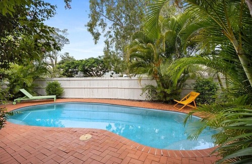 Downstairs includes a large open air-conditioned living area, separate dining area and well-equipped kitchen including dishwasher and microwave . This opens out onto a private fenced courtyard and lush garden, with an outdoor setting perfect for relaxing with friends and family. Full size laundry with washing machine and dryer plus a second toilet. The communal pool is set in around tropical gardens and adjacent to the apartment.