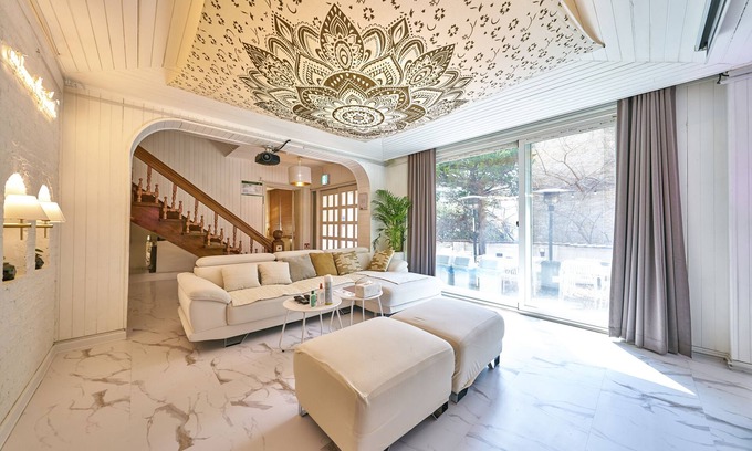 Nestled within the heart of the bustling urban landscape lies a hidden gem, a magnificent two-story house enveloped by a secret garden of unparalleled beauty. This urban oasis stands as a testament to serenity and seclusion, providing a haven of tranquility mere steps away from the metro station Hansung University(Line04) which connects directly to Myeongdong & Seoul station, and tons of cafes and restaurants and historical heritages