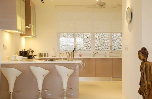 As you enter the villa you find the large main living room which leads directly onto the covered terrace where you can relax and swim in the infinity-edge swimming pool. Alternatively, you can dine on delicious Thai meals, that can be prepared in house at an extra charge, at the 12-seater dining table, or enjoy a relaxed BBQ. The villa has the convenience of a fully-fitted luxury Western-style kitchen equipped to meet all your needs.
