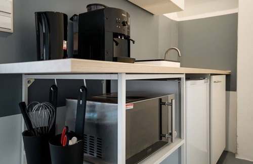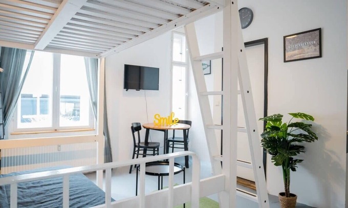The former commercial unit was turned into a beautiful shabby chic style studio. Located on the mezzanine and on approx. 30 m² there is space for up to 2 people. The studio offers a double bed on a bunk level, comfortable sofa elements that can be converted into single beds and flat screen TV with Amazon FireTV Stick and ZattooLive TV function. The kitchenette is equipped with a hot plate, fridge with freezer, coffee maker, kettle, toaster. The bathroom offers shower and WC. Explore Berlin like a local and benefit from the tranquilly location and good connections to the city center.