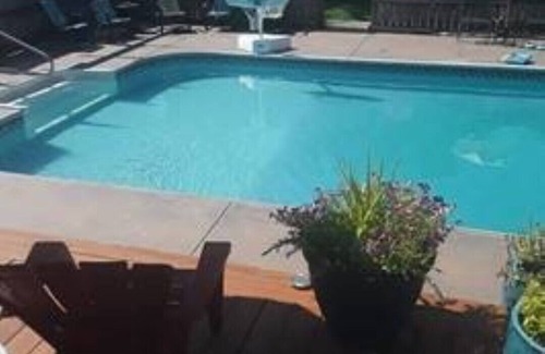 This vacation rental has three bedrooms, a master bedroom with king size bed and bath located upstairs with a hot tub out by the pool and two bedrooms on the main floor that share a bath. The kitchen appliances include dishwasher and washer and dryer. The Outside is the REAL oasis, a 20×40 inground pool with covered deck and sun deck as well, flat screen TV and a half bath, gazebo, full outdoor kitchen, pool table and a large natural gas firepit with lots of seating.