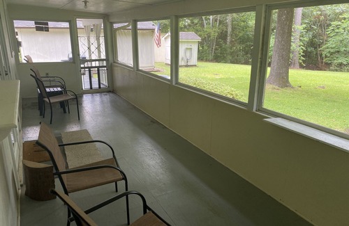 Shady Sunset Cottage is perfectly nestled on Lanana Bay at mid-lake in Braywood Subdivision and has been completely remodeled top to bottom. The home sits on 1.6 acres of land and features 3 bedrooms, 2 bathrooms and sleeps 10 people. There is a screened in back porch for dining or just relaxing and watching the sunset. For the fishermen, there is a one car carport and a one car garage to park those valuable fishing boats in. The property has a large outdoor fireplace area for evening s'mores. This is a great quiet location that is conveniently located minutes from Toledo Town & Tackle, Pendleton Bridge, grocery stores and Cypress Bend Golf Resort! This waterfront get-away is completely stocked with linens, dishes, charcoal grill, pots and pans and more. Pack your bags now because Shady Sunset is awaiting your arrival!