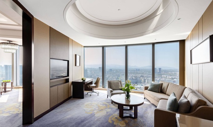 Shangri-La Yiwu offers 362 air-conditioned accommodations with minibars and safes. Beds feature premium bedding. A pillow menu is available. LED televisions come with premium satellite channels. Bathrooms include separate bathtubs and showers with deep soaking bathtubs and rainfall showerheads. Bathrooms are also outfitted with bathrobes, slippers, and designer toiletries.