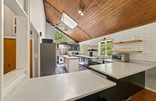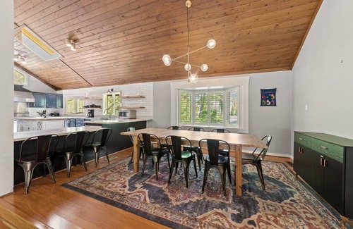 The Shenandoah Getaway Retreat is a gorgeous mid-century modern cabin that has recently been renovated. This spacious home is nestled in the woods and is perfect for those who want a unique and private experience. This home is dog friendly and perfect for those who love to cook in a chef’s kitchen and gather around a large dining table to slow down and make new memories together. A rare combination of rustic, modern, nature and comfort along with a short distance from the hustle of D.C.
