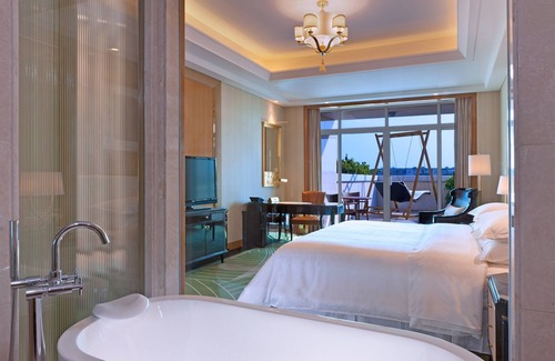 Sheraton Changzhou Wujin Hotel offers 302 air-conditioned accommodations with minibars and safes. Beds feature down comforters. A pillow menu is available. LCD televisions come with digital channels. Bathrooms include separate bathtubs and showers with deep soaking bathtubs and rainfall showerheads. Bathrooms are also outfitted with bathrobes, slippers, and complimentary toiletries.