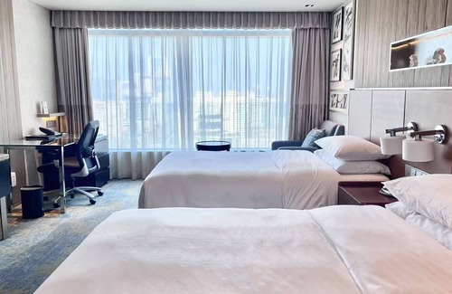 Sheraton Grand Beijing Dongcheng Hotel offers 439 accommodations with minibars and safes. Beds feature down comforters. A pillow menu is available. 42-inch LCD televisions come with satellite channels. Bathrooms include separate bathtubs and showers with deep soaking bathtubs and rainfall showerheads. Bathrooms are also outfitted with bathrobes, slippers, and bidets.