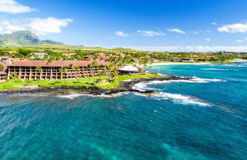 Nestled on 20 acres on Kaua'i's southern shoreline, Sheraton Kauai Resort offers 2 outdoor pools. This Poipu Beach resort is enhanced by Kaua‘i’s natural beauty, site seeing attractions and an array of nearby activities. Each guest room at Sheraton Kauai Resort features amenities such as flat-screen TVs, in-room refrigerators and Shine by Bliss bath products. A beach activities center is offered to guests of this resort. Cultural activities, Hawai'i-rooted cuisine, spa services, romantic wedding locations and a host of spacious meeting spaces are available. Explore and enjoy the many enticing water front dining venues at the Sheraton Kauai Resort, which feature stunning views of the Pacific Ocean and Poipu Beach.