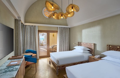 Sheraton Miramar Resort El Gouna offers 339 air-conditioned accommodations, which are accessible via exterior corridors and feature safes and complimentary bottled water. Rooms open to furnished balconies or patios. Accommodations offer separate sitting areas. LCD televisions are featured in guestrooms. Bathrooms include showers, bathrobes, slippers, and complimentary toiletries.