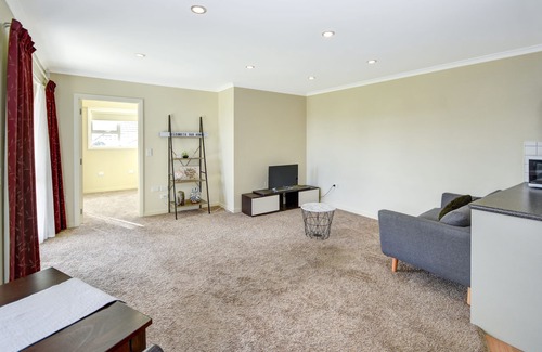Lovely new clean and modern 2 bedroom fully self contained private apartment located at a safe and quiet neighbourhood. Apartment includes 2 queen size beds, lounge seating for 3, a flat screen TV, dining table for 4, kitchen (fridge, toaster, kettle, microwave, sink, kitchen utensils & cutlery), bathroom (shower, toilet, hand basin, heated towel rail.) Excellent heat pump. The laundry is free to use.