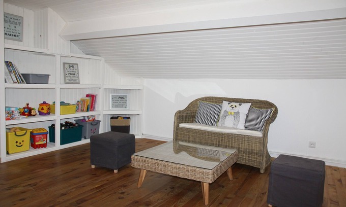 Covered porch with garden furniture, electric barbecue and cellar 30m². Baby equipment and children's games available.