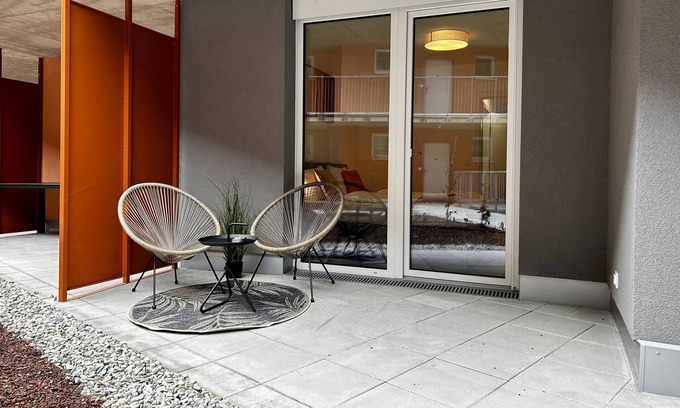 Experience urban living in modern , cozy apartments with online self-check-in. Free WiFi , high-speed internet and flat-screen TV. Fully equipped kitchen. Modern bathrooms. Good transport connections, bus stop on site, 5 minutes to Graz Airport. Restaurants , shopping and entertainment nearby. Parking available. Discover the surrounding area on the bike path. Breakfast at the sHome Hotel, 500 m away.