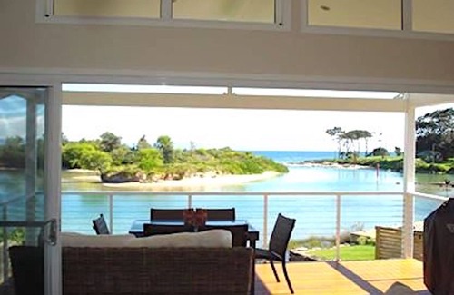 The house is built on the edge of a lagoon with stunning 180 degree views to the ocean. You can swim, fish, paddle-board and kayak right from your back door step. Or sit back on the deck and view the daily parade of holiday activity: from paddle-boarders at high tide to soldier crabs at low tide.