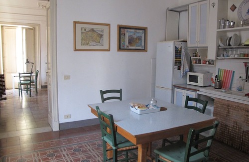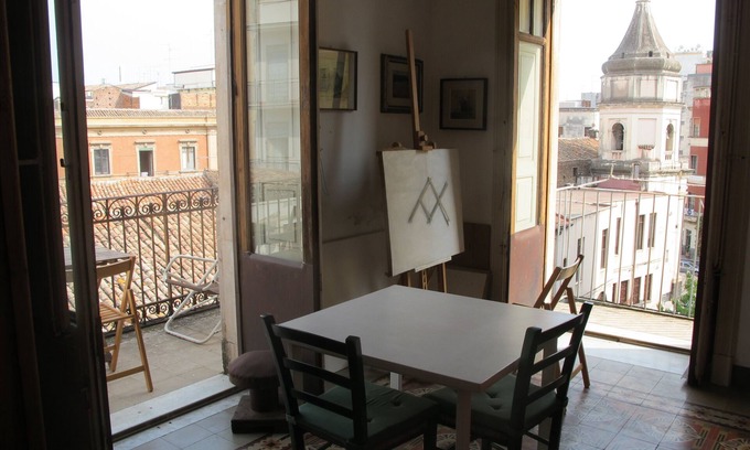 Entire large and bright Sicilian house with two bedrooms, one very large with 1 double bed and 1 single bed, the other with a double bed, with 2 bathrooms. The apartment is in a building of the early twentieth century, with large vaulted ceilings and large windows, located on the 3rd and last floor without a lift, a large living room, and a large and bright perfectly furnished eat-in kitchen, laundry closet, large balcony. Sheets and towels are provided. Wireless Internet. Free car parking on the road or various garages near payment. The house is located behind the church of Monserrato in the Borgo district, near via Etnea Alta, the main street of the city, in a neighborhood where you can breathe the atmosphere of ancient residential Catania, a place of great cultural ferment, colorful and full of activity. By car it can be easily reached both from the ring road and from the ring road and from the motorway connections. Easy to get to from the port and airport. It is 10 minutes walk from the bus stop to reach the airport; 5 minutes walk to the subway stop to reach the railway station and the suburban bus station.