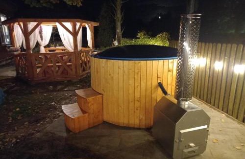 Siedlisko Sielanka is a recently renovated vacation home in Karczewizna where guests can make the most of the free bikes and garden. There's an outdoor fireplace and guests can use free Wifi and free private parking. Featuring a terrace with garden views, this vacation home also comes with a flat-screen TV, a well-equipped kitchen with a microwave, a toaster, and a fridge, as well as 1 bathroom with a bath and slippers. The property has an outdoor dining area. Outdoor play equipment is also available for guests at the vacation home. Warsaw Modlin Airport is 52 miles from the property.